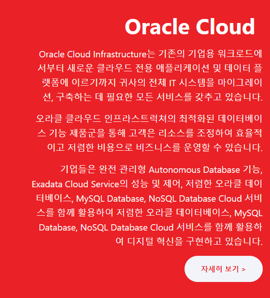 오라클 시스템 및 소프트웨어에 대한 기술지원 서비스를 제공합니다.